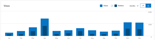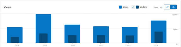 Since 2019 we have ranged between 5000 – 10000 hits per year. The biggest year was of course 2020, no need for explanation there. The second largest year was 2024.